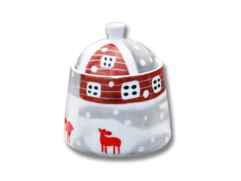 Handbemaltes Porzellan, Keramik, Porzellanmarken: handbemalte Zuckerdose mit Schneeelchmotiv