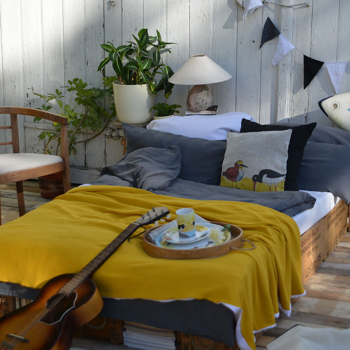 Produktinformationen "Tagesdecke aus Stonewashed Leinen & gestrickte Baumwolle, gelb von SchulzHOMEWEAR"