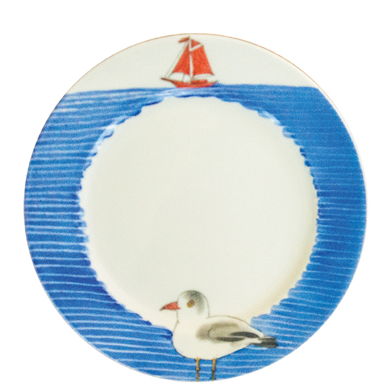 Handbemaltes Porzellan: Teller 26 cm Wind & Weite Möwe mit Segelboot.