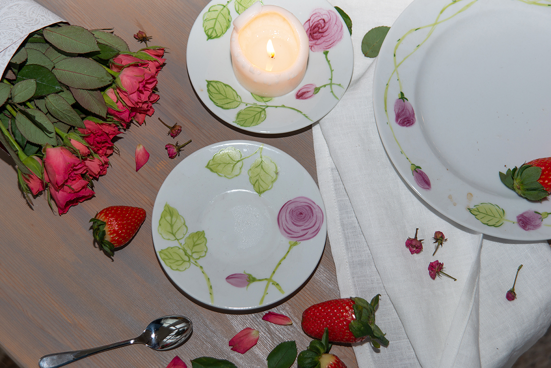 MIT ZARTEN ROSEN: Handbemaltes Porzellangeschirr von Helina Tilk