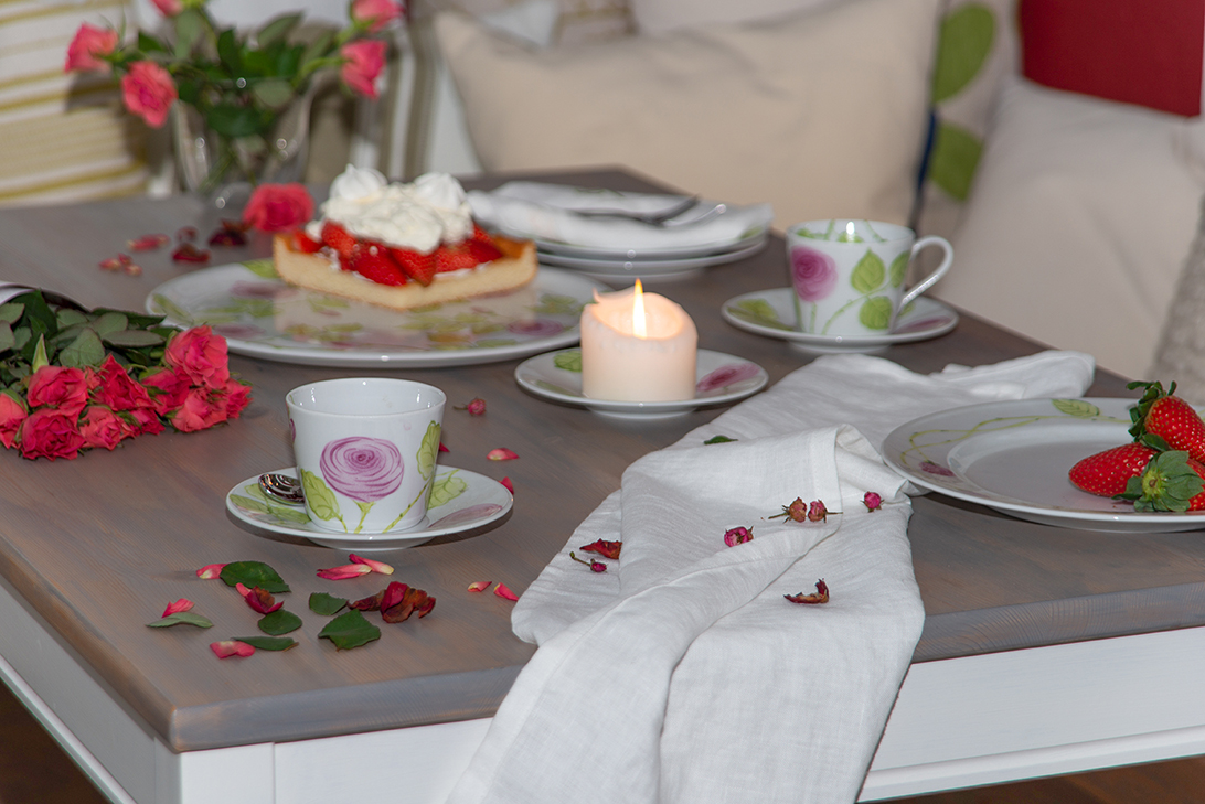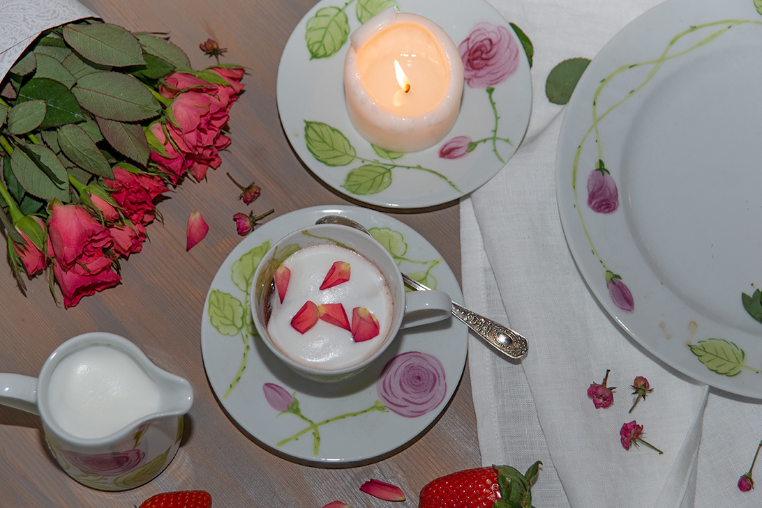 Als kleine Inspiration gibt es passend zum Rosengeschirr auch gleich ein Rezept für einen leckeren Rosen-Chai-Latte dazu.