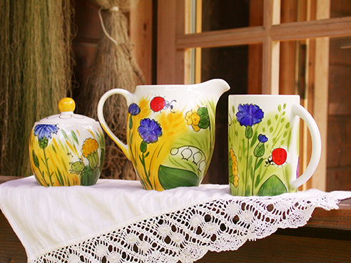 Wir leben in einer Wegwerfgesellschaft und sind umgeben von Billigartikeln und Massenware. Besonders im Zeitalter der Digitalisierung sehnt man sich nach etwas Vertrautem und Traditionellem. Dieses Bedürfnis greift Helina Tilk auf. Jedes Stück ist handbemalt und damit einzigartig. Helina Tilk ist bekannt für ihre Naturmotive und ihre fröhlichen Dekore und hat sich für die Zeit der Sommersonnenwende wieder etwas ganz Besonderes ausgedacht. Die Sommersonnenwende ist hierzulande kaum bekannt, doch in Estland ist sie das größte Fest nach Weihnachten. Sie markiert den längsten Tag und die kürzeste Nacht im Jahr.