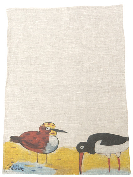 Helina Tilk Deutschland: Geschirrtuch 70 x 50 Austernfischer + Strandläufer 100 % Leinen natur