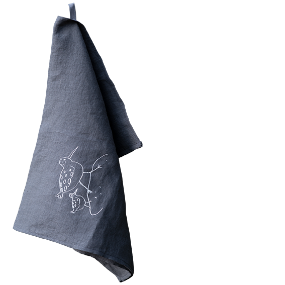 Handtuch 50 x 70 cm graues Stonewashed Leinen. Weisses Siebdruck.
