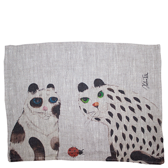 Helina Tilk: Heimtextilien - Platzdeckchen 34x44 Katze mit Käfer natur 100 % Leinen