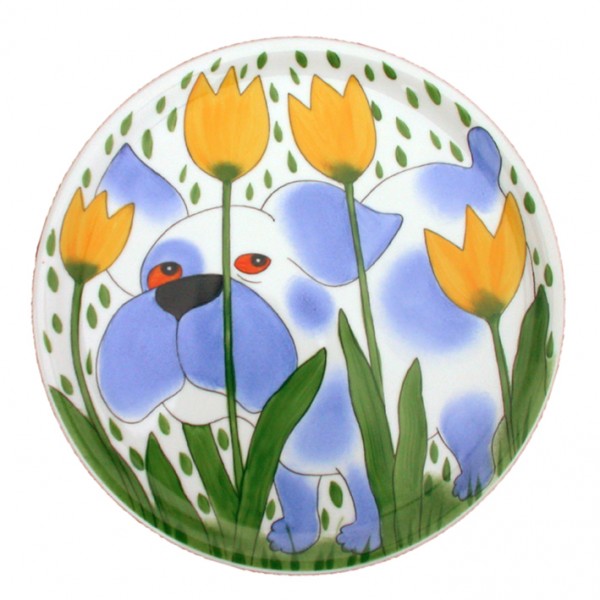 Hund mit Tulpe Tortenplatte 31 cm