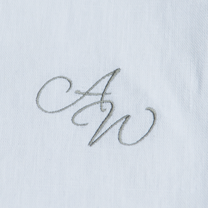 Wählen Sie die Farbe Stickerei Ton-in-Ton zur Farbe des Stoffes so wird die der Schriftzug oder das Monogramm ein elegant-zurückhaltendes Details. Wünschen Sie es etwas auffälliger, so wählen Sie eine Kontrastfarbe.