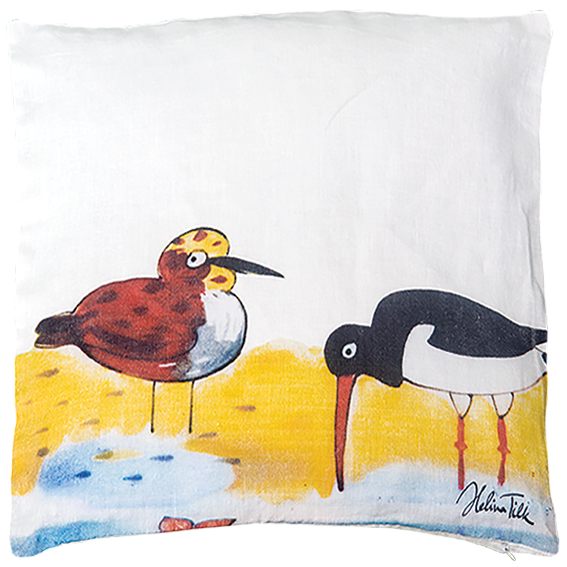 Helina Tilk: Heimtextilien - Kissenbezug 40 x 40 Austernfischer + Strandläufer 100 % Leinen weiß