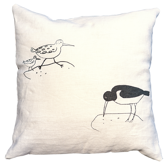 Kissenbezug 40 x40 cm Austernfischer und Strandläufer, schwarz weiß, per siebdruckverfahren gedruckt