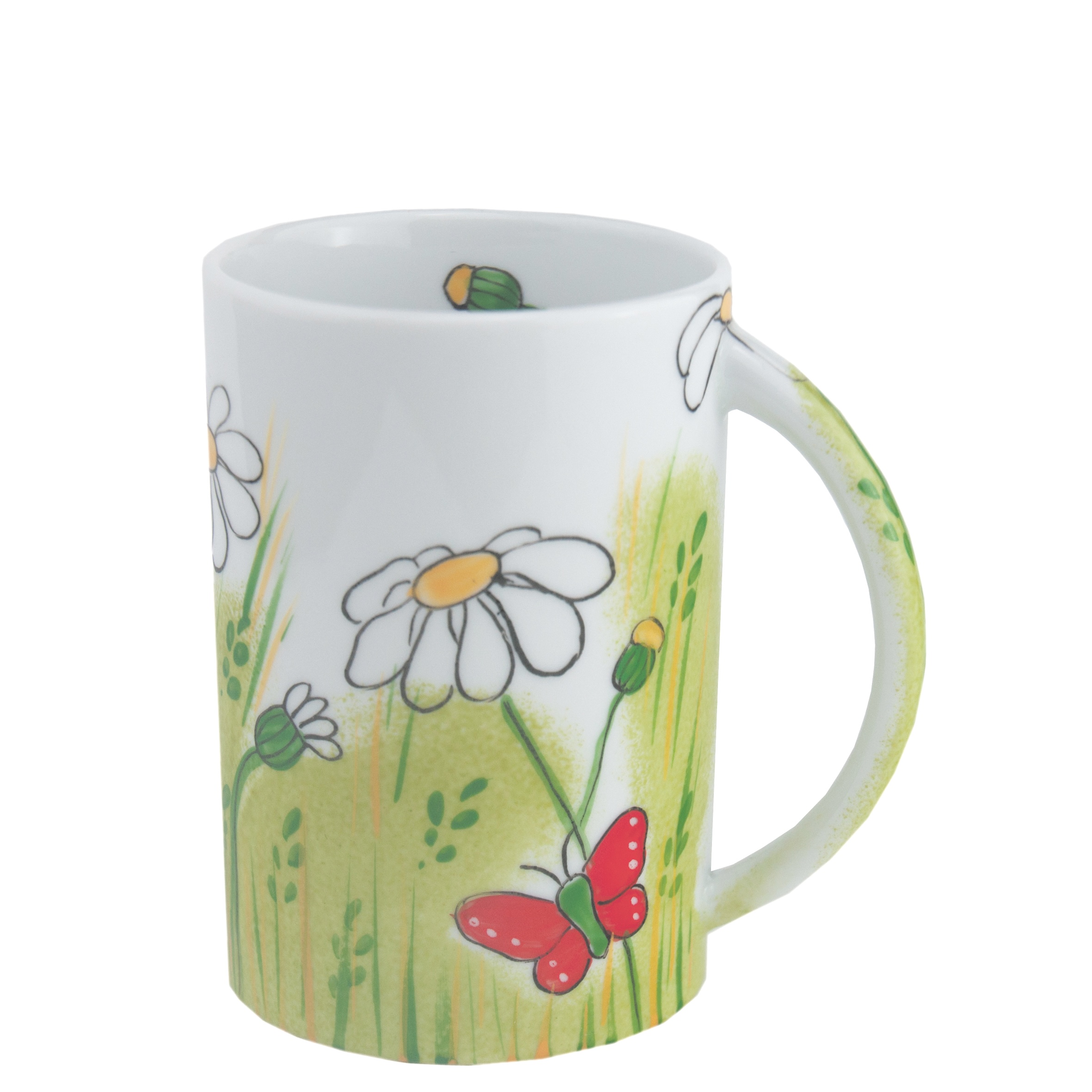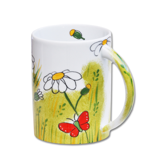 Helina Tilk: handbemalter Henkelbecher aus Porzellan mit Margarittenmotiv 300 ml