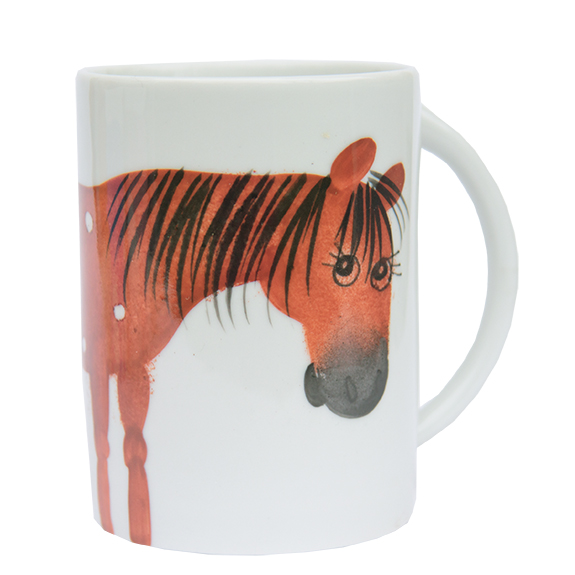 Handbemaltes Porzellan: handbemalter Henkelbecher, 300ml Motiv: Osvald Pferd braun