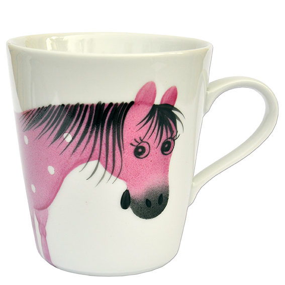 Handbemaltes Porzellan: handbemalter Henkelbecher, Motiv: Osvald Pferd rosa