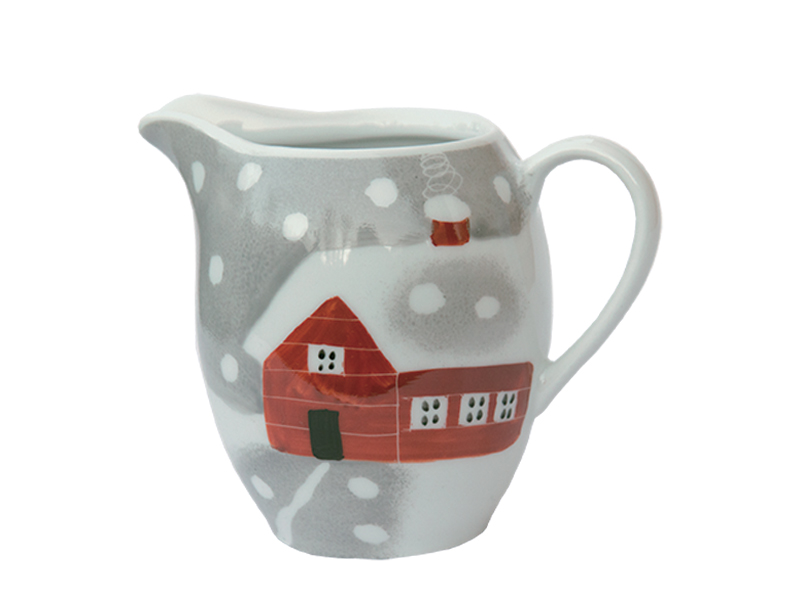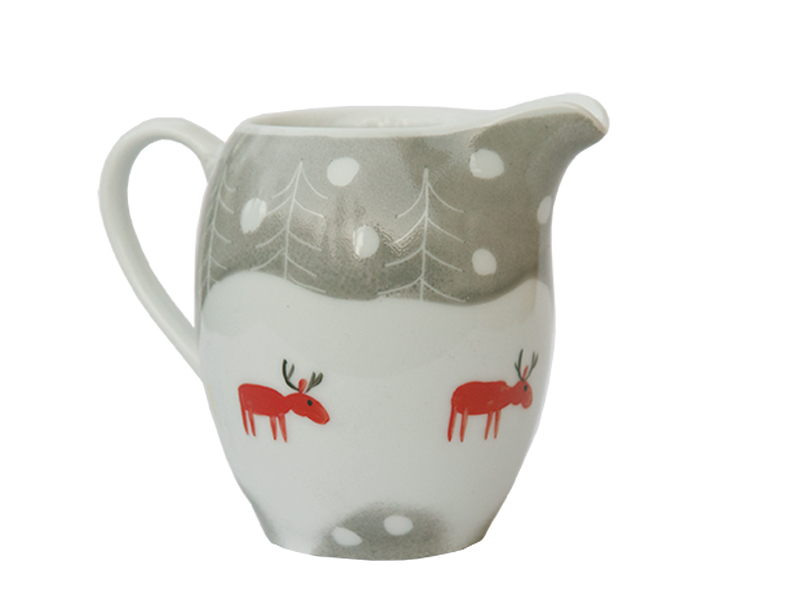 Handbemaltes Porzellan: handbemalte Sahnekanne 0,25l mit Schneeelchmotiv (runde Form)