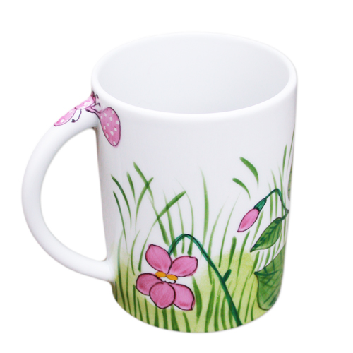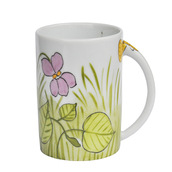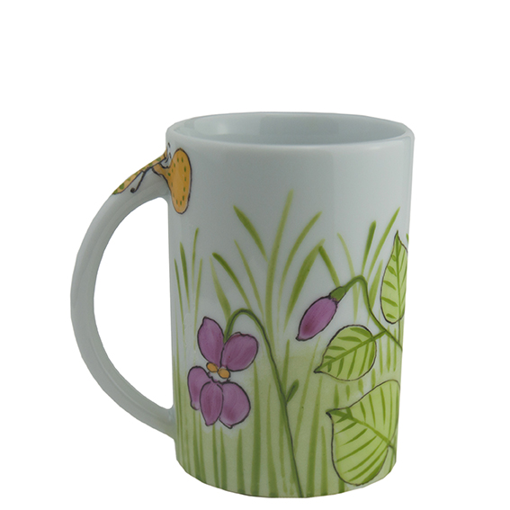 Helina Tilk: handbemalter Henkelbecher aus Porzellan mit Veilchenmotiv 300ml