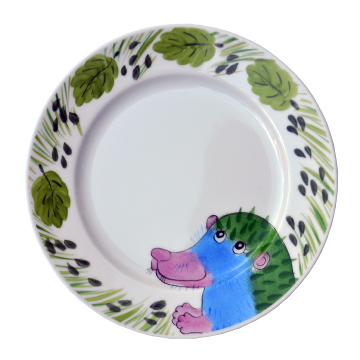 Porzellan Helina Tilk Deutschland: handbemalter Teller 19 cm, Motiv: Waldtiere Igel