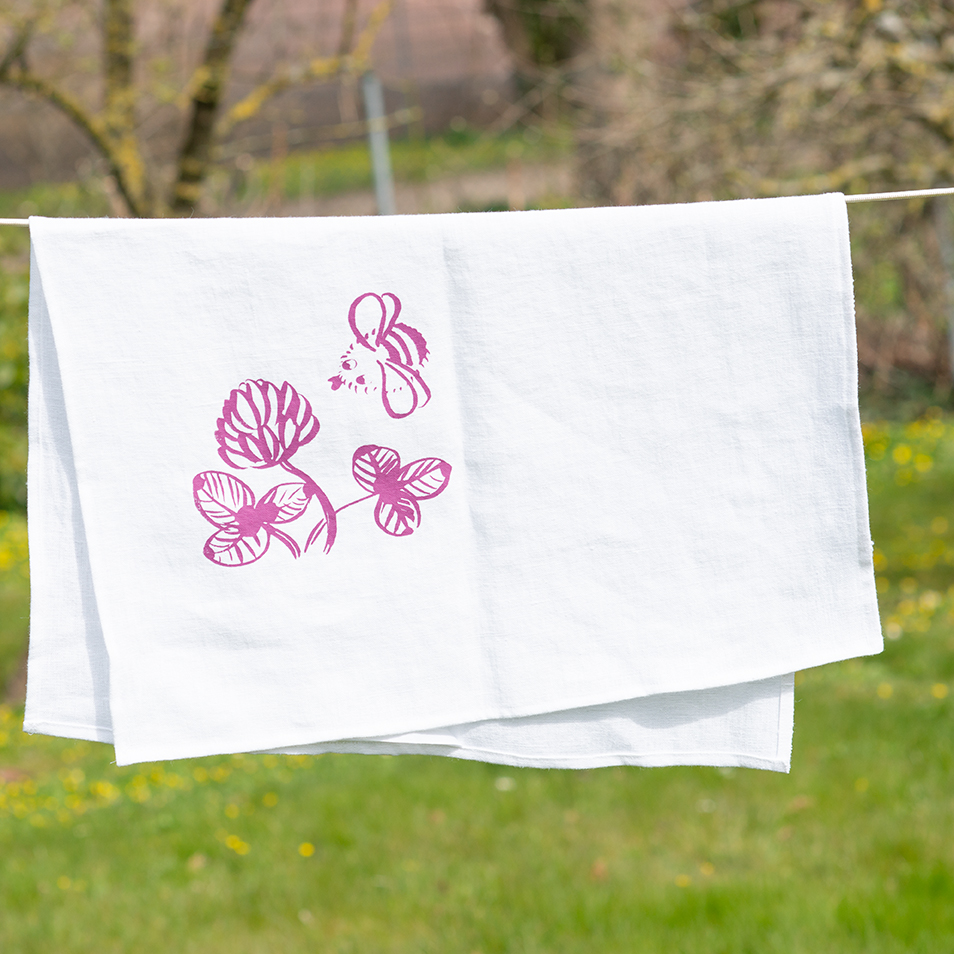 Handtuch 50 x 70 Wiesenklee mit Biene, gelb. Stonewashed Leinen. Siebdruck. Preis: 8,00 €