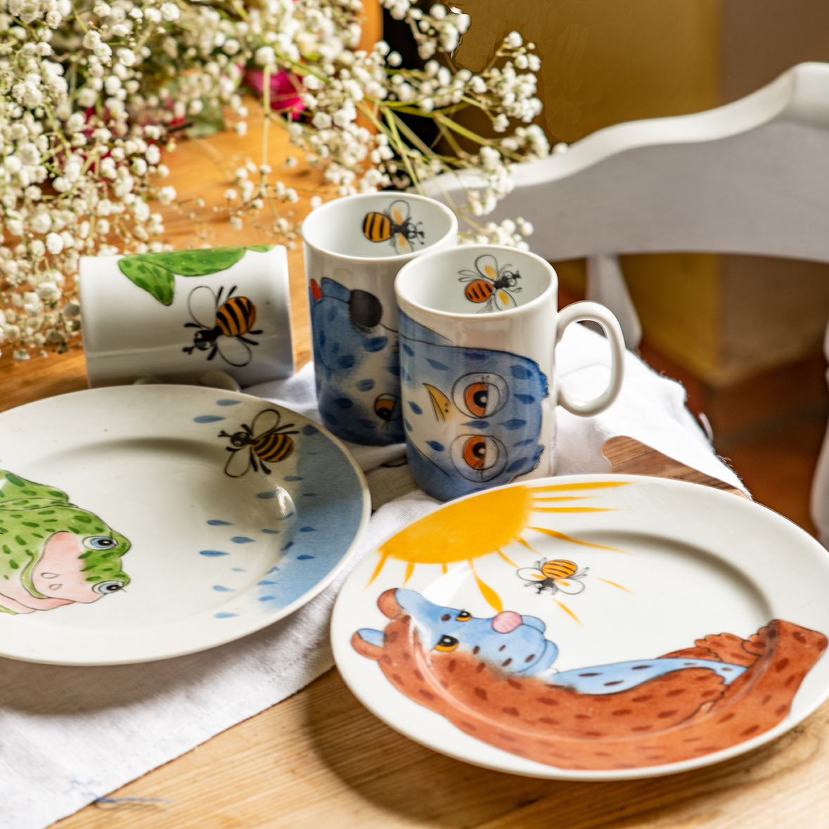 Lass uns die Natur beobachten und staunen; so wie Kinder es tun. Unser Porzellan erzählt Geschichten. Erzähl diese Geschichten weiter; zusammen mit deinen Kindern. So wird das Interesse bei den Kleinsten geweckt, unsere fantastische Natur und ihre tierischen Bewohner zu respektieren und zu schützen.