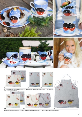 13 Schale 26cm 14 Schale 16cm 15 Zuckerdose 16Serviettenhalter 17 Eierbecher 21 Platzdecke weiss/grau 43cm x 31cm 22 Geschirrtuch grau 70cm x 50cm 23 Geschirr-