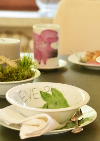 Clever Piggy : 5 Teller 19cm 6 Schale 16cm 7 Teller 11cm 8 Henkelbecher hoch 0,25 l